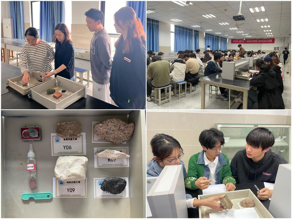 本届地质基本功竞赛分为初赛和决赛两个环节。初赛由来自地科、地物、资环、油工四个学院不同年级和专业的270名参赛选手组成68支队伍积极参与。初赛主要考察学生对常见矿物、岩石的鉴定能力,由实验中心高洁、辛长静等教师精心挑选比赛用标本,并认真严格阅卷。与去年相比,今年决赛的形式继续改革创新。决赛队伍首先要在实验室对三块岩石薄片和两块古生物标本展开鉴定,这一环节重点考察同学们对显微镜使用的熟练程度,同时也考验大家手绘古生物标本和岩石薄片的能力。各队还需要依据自己的鉴定报告制作 PPT 并进行汇报,全面考查大家的综合素质。