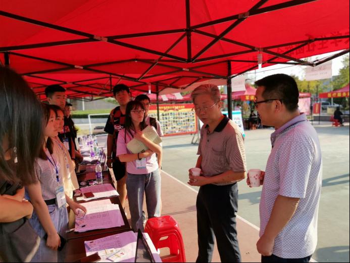 9月4日下午五点左右,张玉清校长亲自莅临万象城官网迎新处了解新生接待情况,与新生及现场工作人员亲切交流,为同学们的迎新工作加油打气。