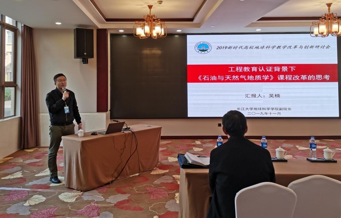 在广泛听取大会各项报告的同时,万象城awc官网登录入口吴楠副院长和李功权副教授、地球物理与石油资源学院毛宁波教授、分别就工程教育认证背景下“石油与天然气地质学”课程改革的思考、综合地质实习虚拟仿真平台的构建、“地震勘探原理”金课建设与思考做了专题的报告,并同与会专家教授进行进一步交流与沟通。