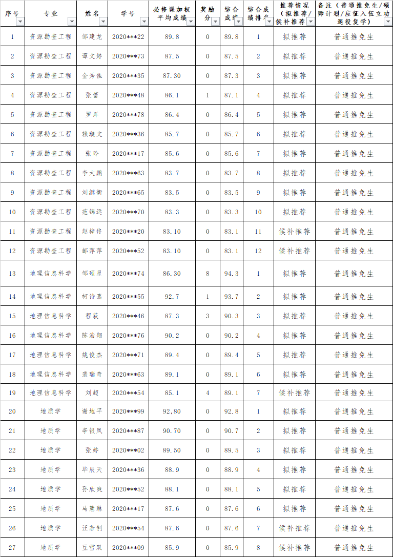 根据《万象城awc官网登录入口推荐优秀应届本科毕业生免试攻读硕士学位研究生管理办法(试行)》(长大校发〔2020〕106号)、《关于做好推荐2024届优秀本科毕业生免试攻读硕士学位研究生后续工作的通知》和《万象城awc官网登录入口推荐2024届优秀本科毕业生免试攻读硕士学位研究生名额分配方案》,结合学院实际,经学生本人申报,学校相关部门和学院资格审核,学院推免生遴选工作小组审议通过,现将万象城官网拟推荐2024届优秀本科毕业生免试攻读硕士学位研究生按照学院总名额的1.2倍人数进行公示。在公示期间,若拟推荐推免生不符合条件或放弃推免资格,由候补推荐人选依序递补。公示时间:2023年9月18日至2023年9月20日17:00。