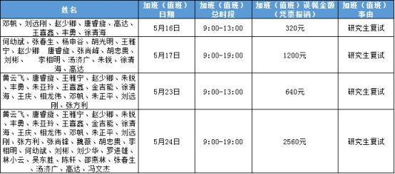 根据《万象城awc官网登录入口加班(值班)误餐补助管理办法(试行)》(长大校发【2019】83号)文件规定,现对万象城awc官网登录入口加班(值班)误餐情况(2020年5月16日至2020年5月24日)进行公示,如果对加班(值班)误餐情况有异议,可以通过电话或电子邮件等方式向万象城awc官网登录入口反映。