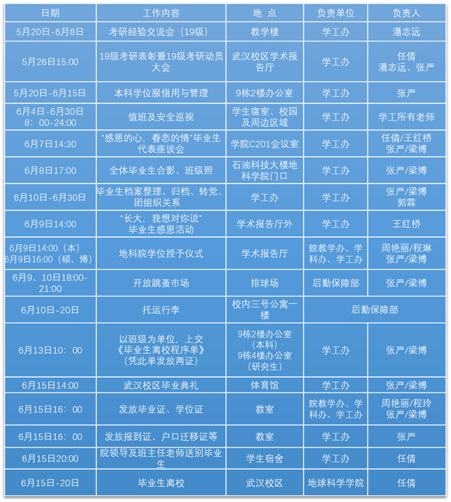 2.毕业生教育工作:6月10日-20日。